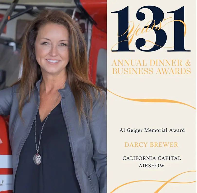 Through her leadership with the California Capital Airshow, Darcy Brewer, Executive Director, has helped create events that unite the region, inspire future generations, and support important community initiatives. Her dedication to service, professionalism, and civic engagement reflects the very spirit this award represents.