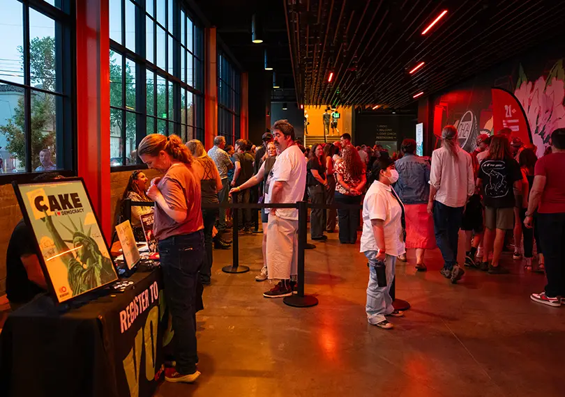 ย Attendees waiting to get Cake merchandise at Channel 24 on Saturday, March 21 in Sacramento. (Photo by Xavier Figueroa)
